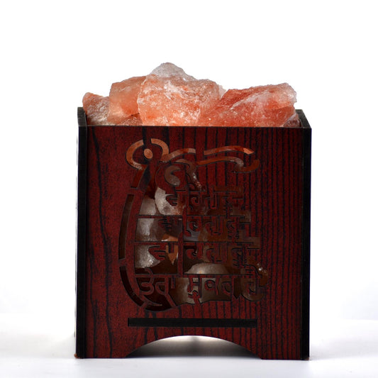 Om Namah Shivay Himalayan Rock Salt Wooden Basket Lamp – Shiv Mantra Salt Lamp