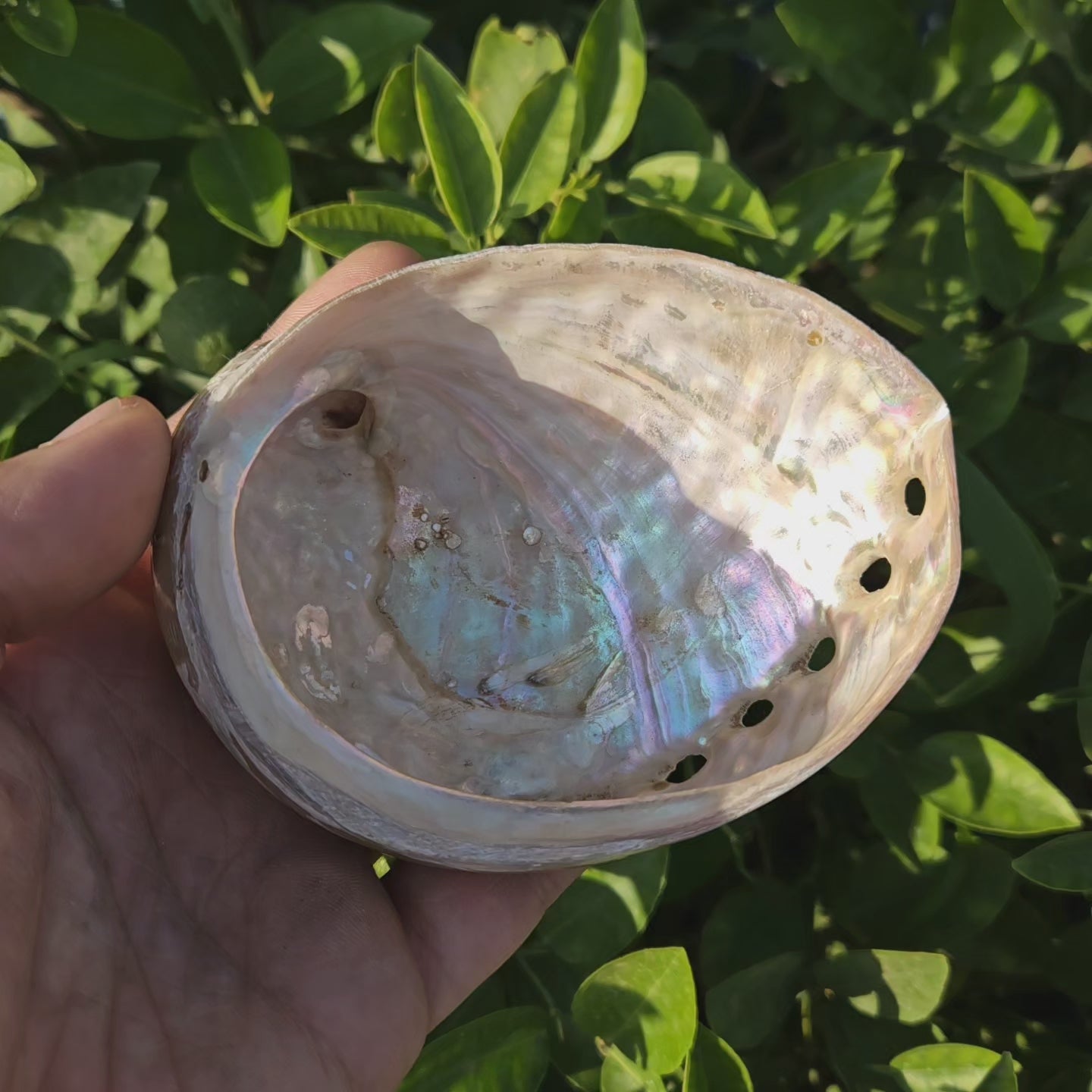 All our abalone shells are super nice retail grade quality, not museum quality. They are real. The backs may have cuts, scrapes, holes, scars and blemishes. If you look at the posted pictures you will see the holes which are common to 99.99% of these shells. Some of the edges may have an odd small chip. Some have a clear glaze or polished interior to reveal beautiful shades of greens, blues and silver and many other colors, many with some black accents. Black on the inside does not mean the shell has been used – it is a natural coloration in some shells. These shells are perfect for smudging ceremonies and can also burn resins, etc. They also can act as a storage home for your smudge sticks or as a beautiful natural home decoration, great for holding and displaying tumble stones, etc.