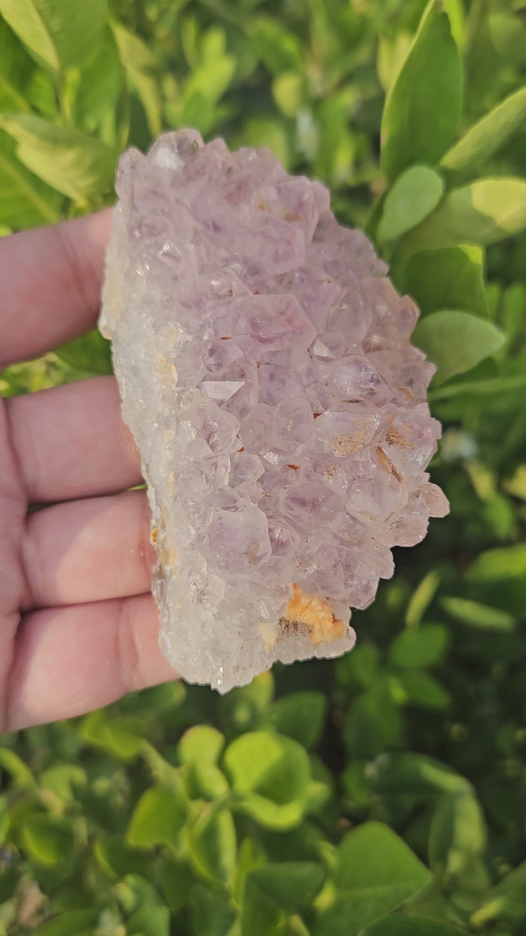 - You may see some black spots in Amethyst clusters it's quite natural in amethyst. Could be due to inclusions of goethite or hematite.