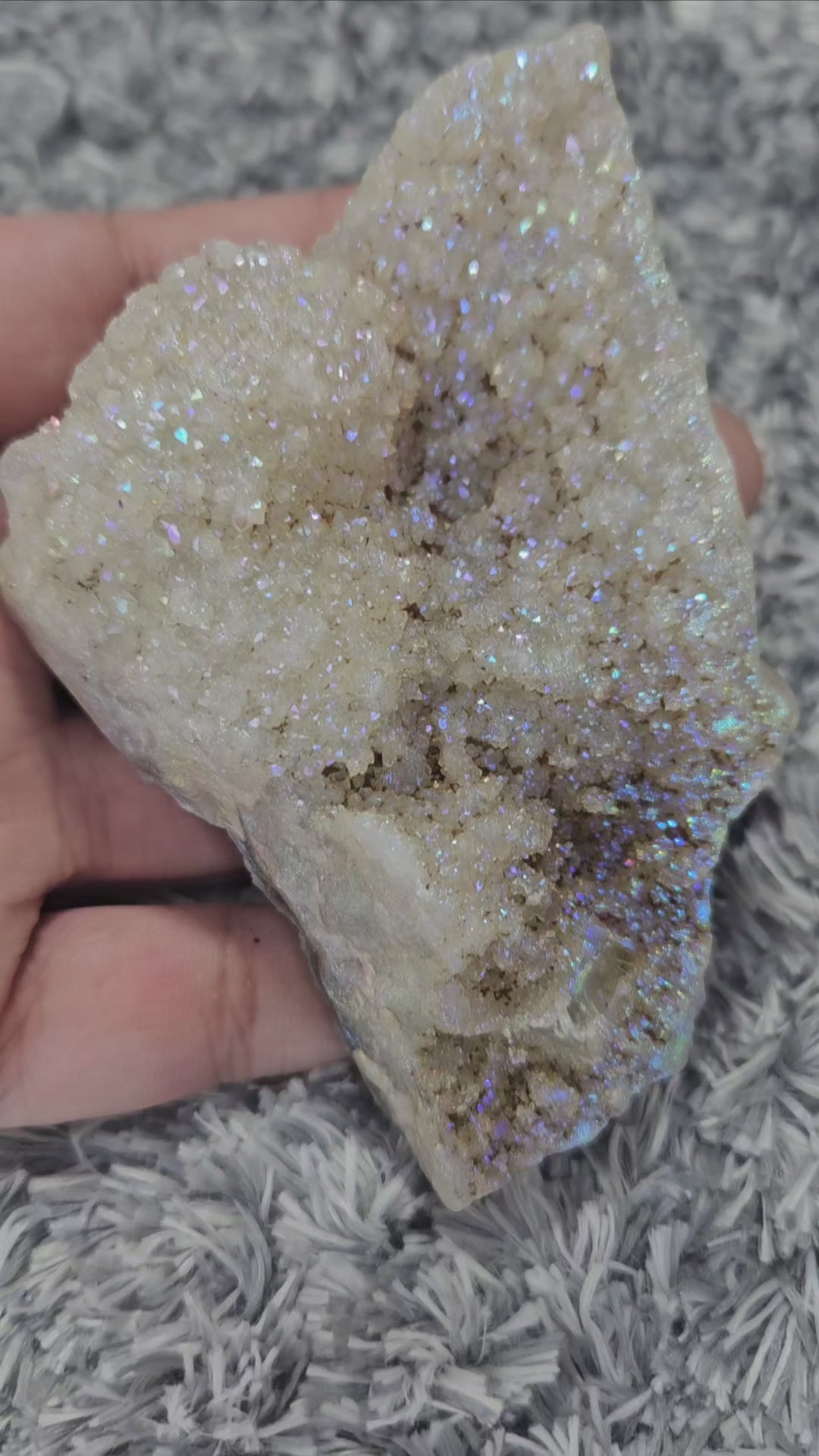 ❀Aura quartz is a clear quartz that has been alchemically coated with precious metals like titanium, niobium, gold, silver, platinum, and so on. This synergistic application creates a powerhouse of a healer, combining the master healing of clear quartz with the unique healing of precious metals.