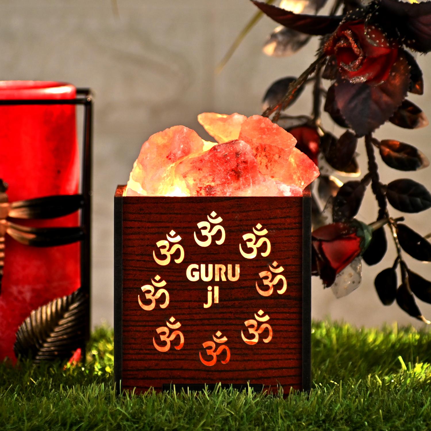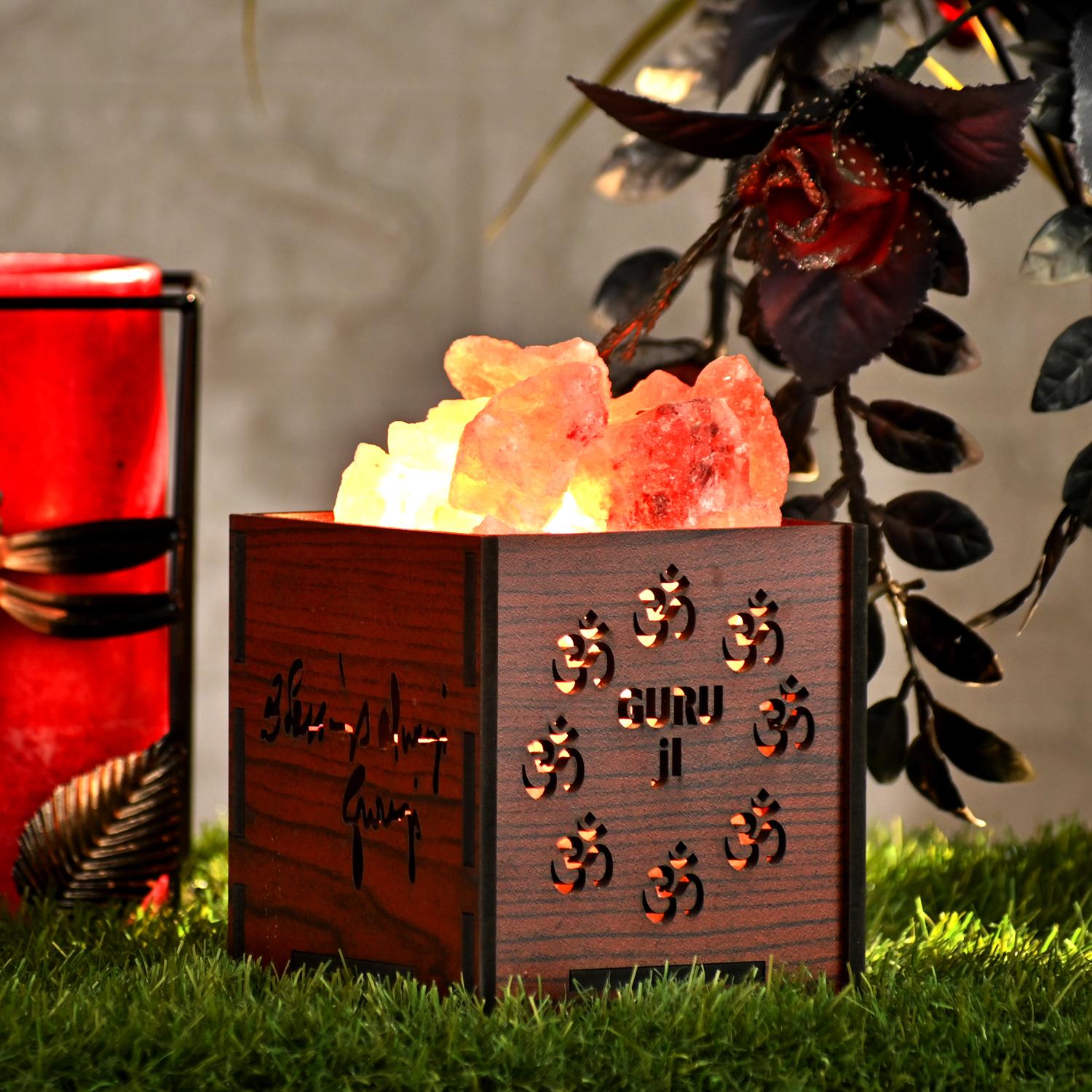 Guru Ji Blessing Himalayan Rock Salt Wooden Basket Lamp – Spiritual Salt Lamp