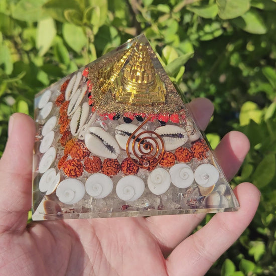 Invoke the energy of Goddess Lakshmi with our Lakshmi Pyramid, a sacred symbol of wealth, harmony, and divine fortune. Meticulously handcrafted, this pyramid is infused with the pure energies of Shree Yantra, White Kaudi, Rudraksha, Gomti Chakra, Ratti Chanoti, and Copper Wire — each chosen for its deep spiritual significance and prosperity-attracting vibrations.