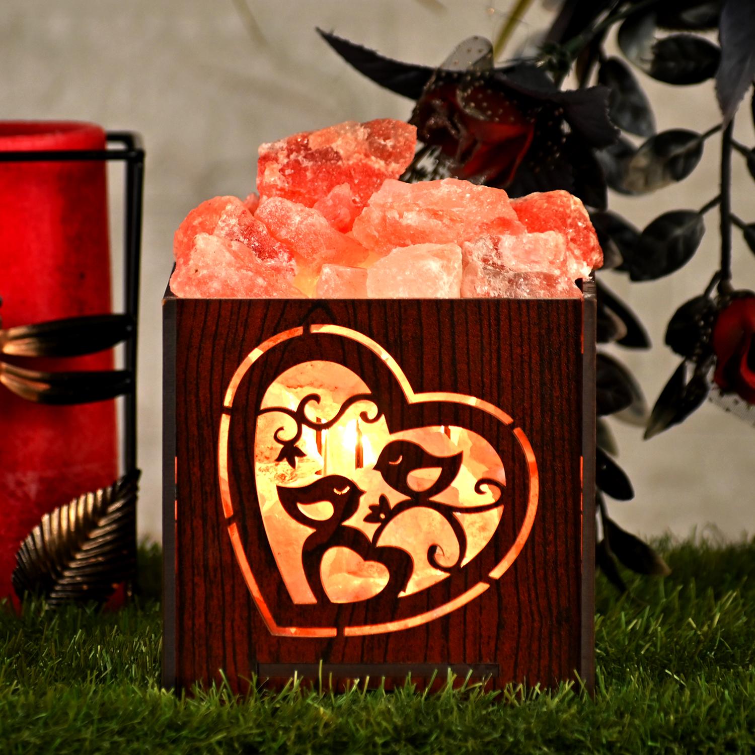 Love Himalayan Rock Salt Wooden Basket Lamp – Decorative Love Salt Lamp