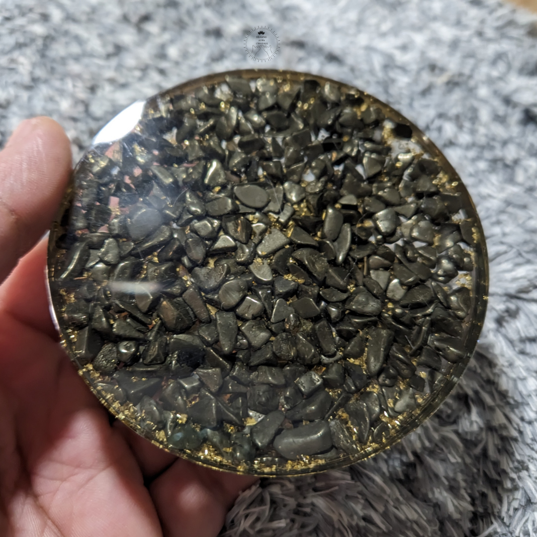 Material: Metal, crystal glass, Resin, and natural Pyrite stones