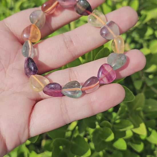 Rainbow/ Multi Fluorite Heart Beads Bracelet