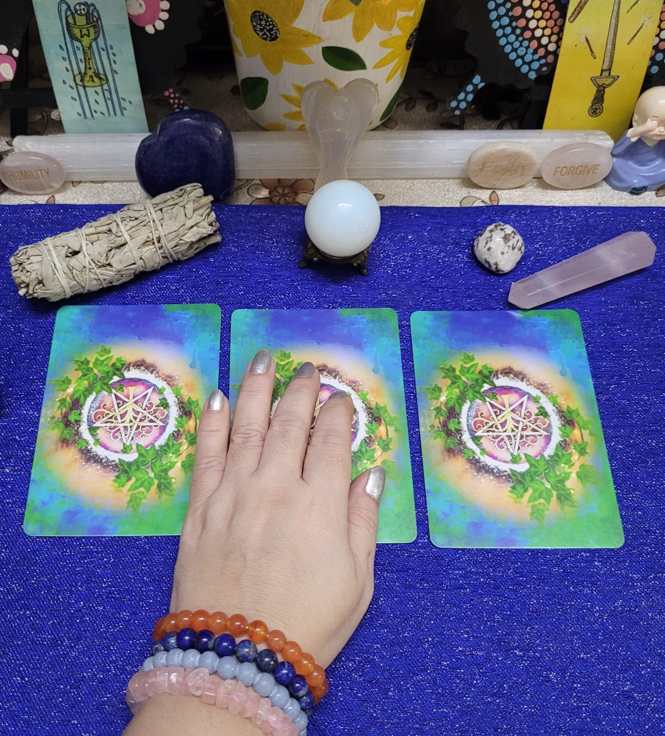 The reader picks cards based on your energy intuitively and gives you the answer to your questions, or the guidance you may be looking for, each reading is unique and depends on what cards come up for you.